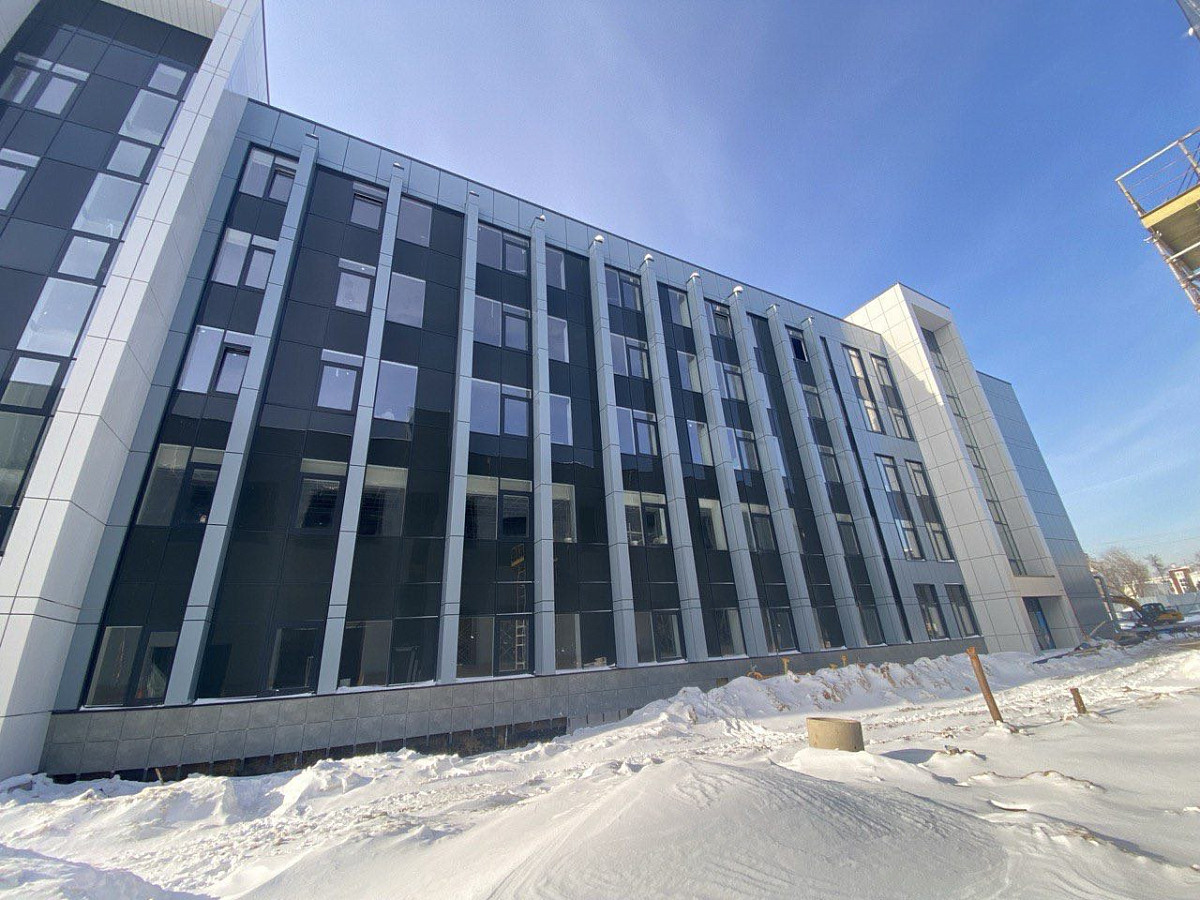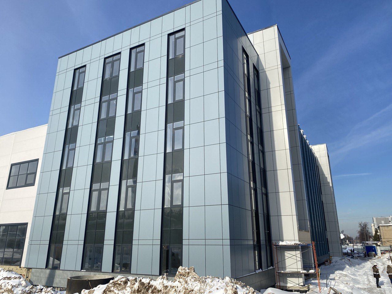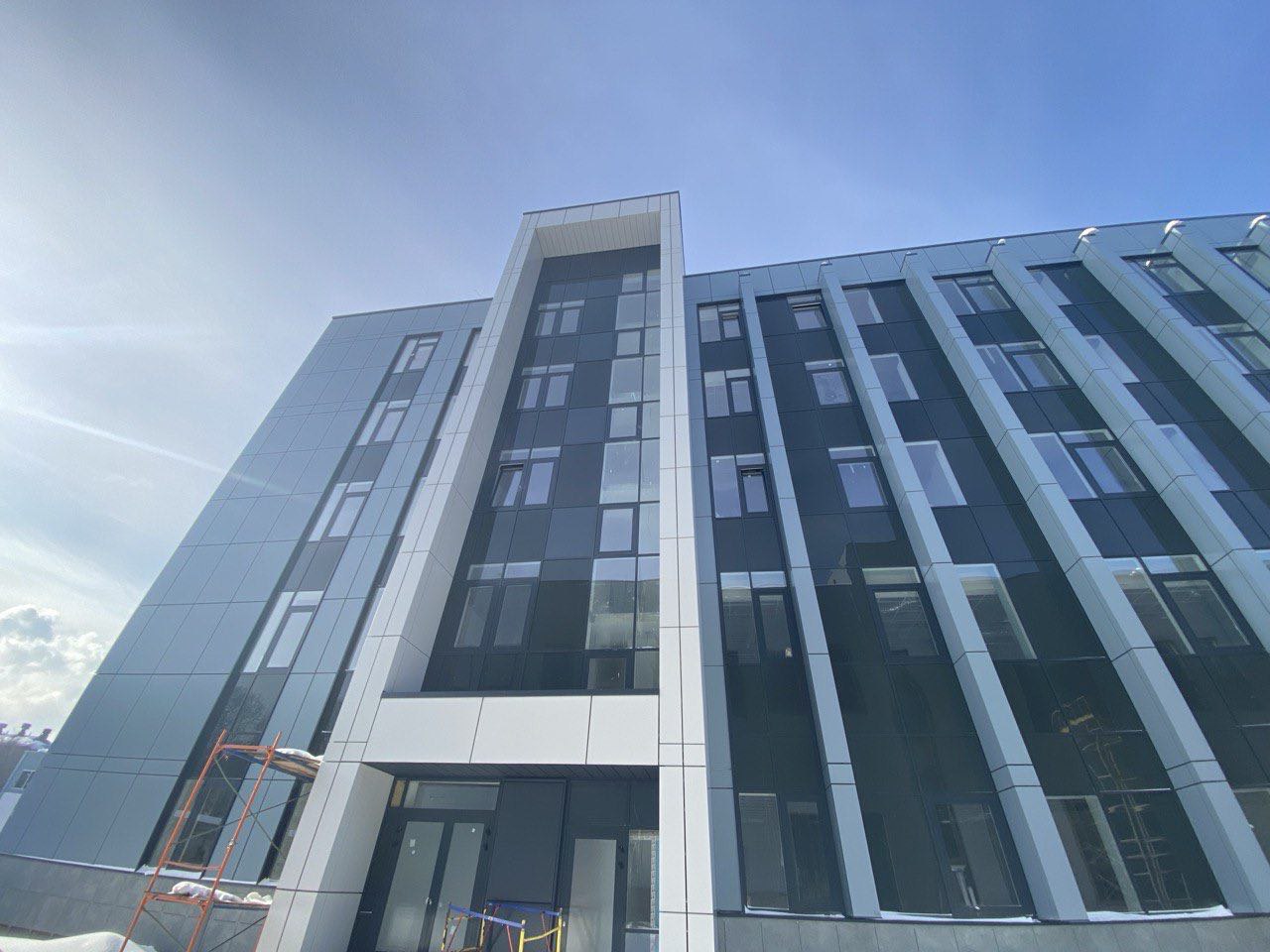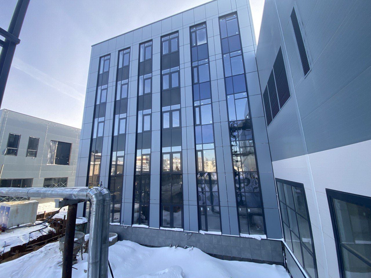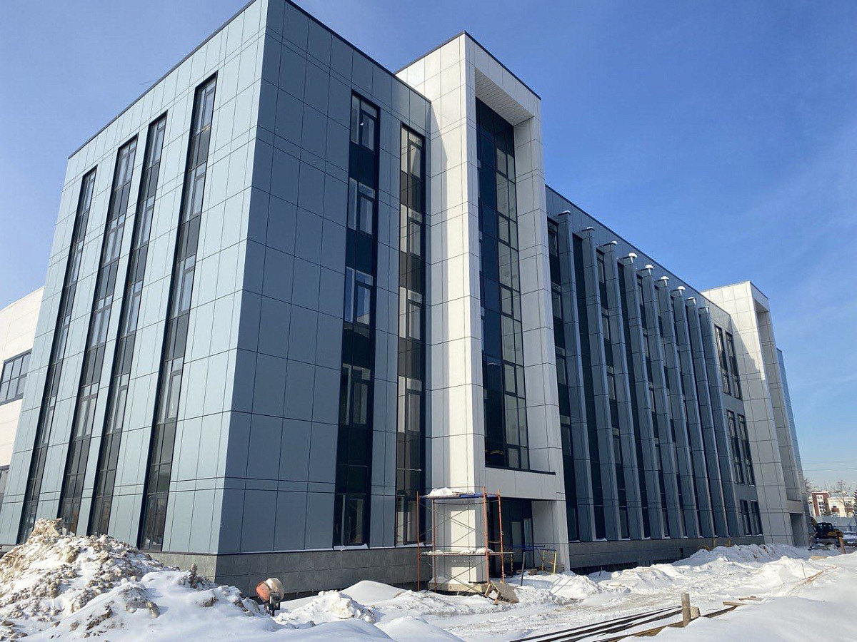 Физкультурное оздоровительный комплекс: монтаж вентфасада из композитных панелей